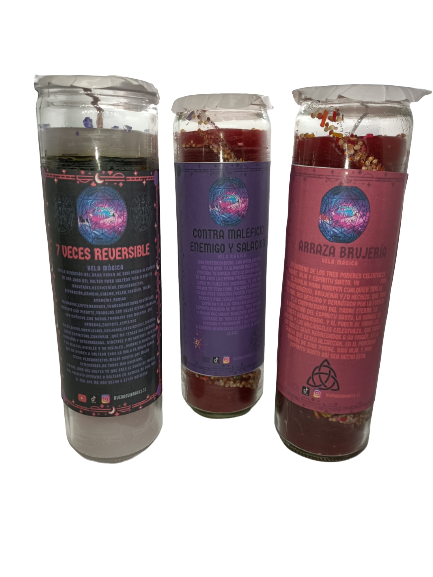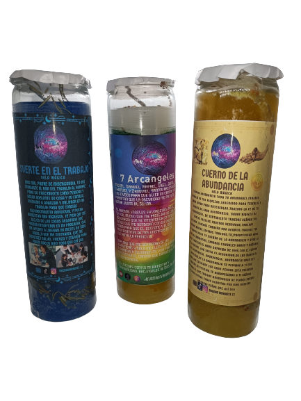 Adquiere tu veladora preparada. Contamos con títulos como abrecaminos, 7 veces reversoble, éxito, cuerno de la abundancia, arraza brujería, entre otras.